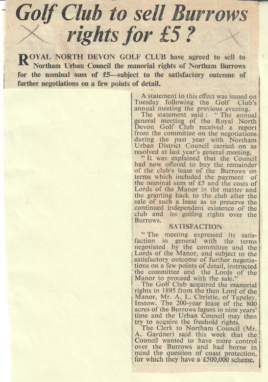 Golf Club to sell Burrows rights for £5?, 25 Aug 1961